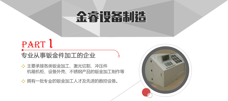 合肥金睿機械制造有限公司是一家長期從事鈑金件加工的新技術股份制企業,主要承接各類鈑金加工、激光切割、沖壓件、機箱機柜、設備外殼、不銹鋼產品的鈑金加工制作等。公司坐落于安徽省肥東縣龍?zhí)燎嗄旯I園,距合肥繞城高速龍?zhí)脸隹趦H2公里,華東建材城對面,交通十分便利,地理位置優(yōu)越?,F擁有廠房建筑面積2000余平方米,員工30余人。   合肥金睿機械制造有限公司擁有一批專業的鈑金加工人才及先進的數控設備。主要針對:農業設備、汽車、醫療設備、金融、電信交通、新能源、電器、環(huán)保、機械、建筑裝飾、等行業的鈑金件進行加工、激光切割和表面處理等。   合肥金睿機械制造有限公司加工設備均采用進口數控沖床...